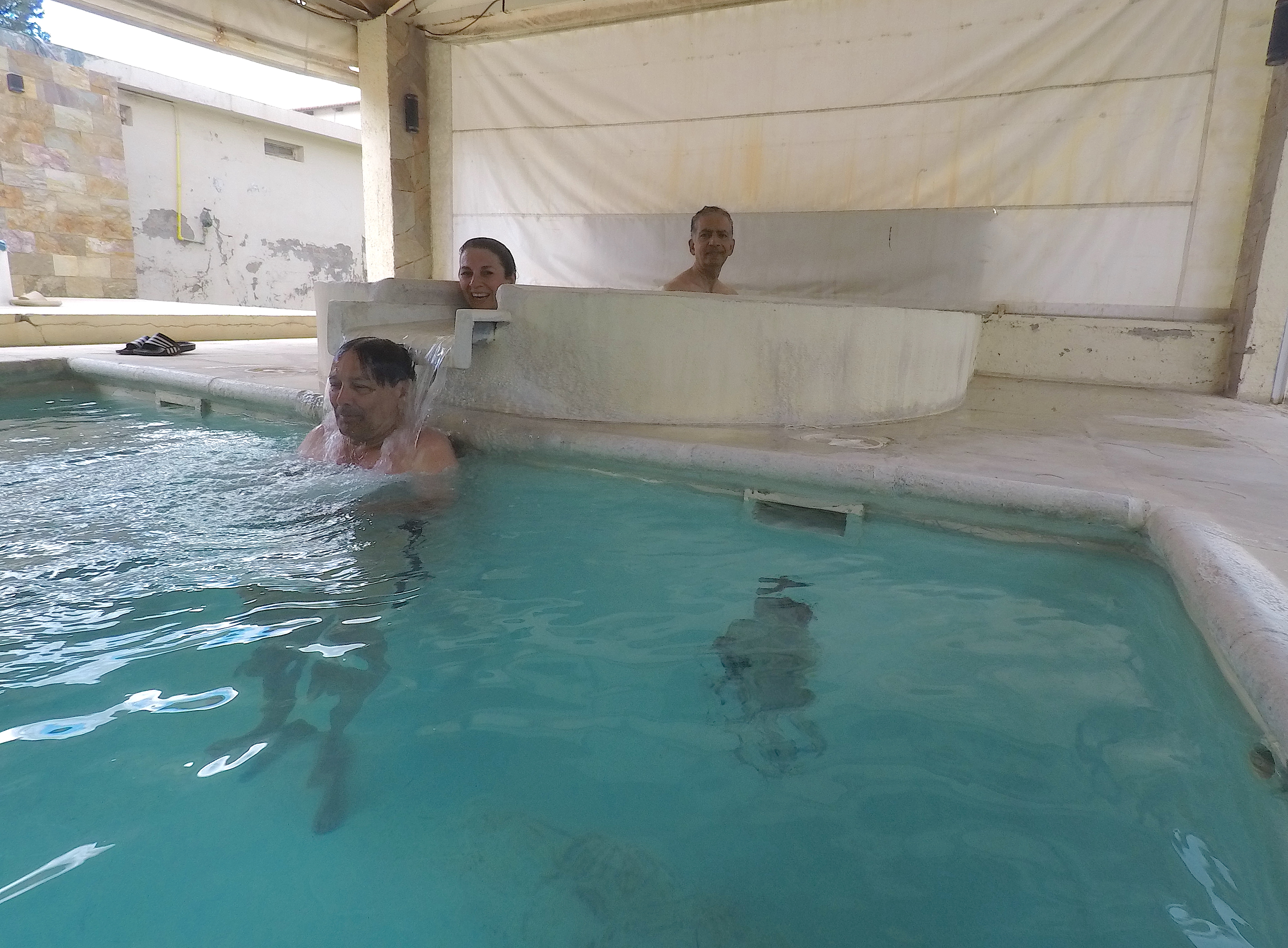 No sé cual habrá sido el proceso de cambio de planes, pero terminamos en el otro extremo del espectro de pasos posibles... unas termas jajajajajajaj!!